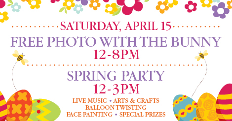 Hop on over to Metrocenter on Saturday, April 15th for a family fun festive Spring Party from 12pm to 3pm. There will be Live Music, Face Painters, Balloon Twisters, Arts & Crafts, Spin to Win Prizes + FREE Photo with The Bunny (12pm-8pm)!